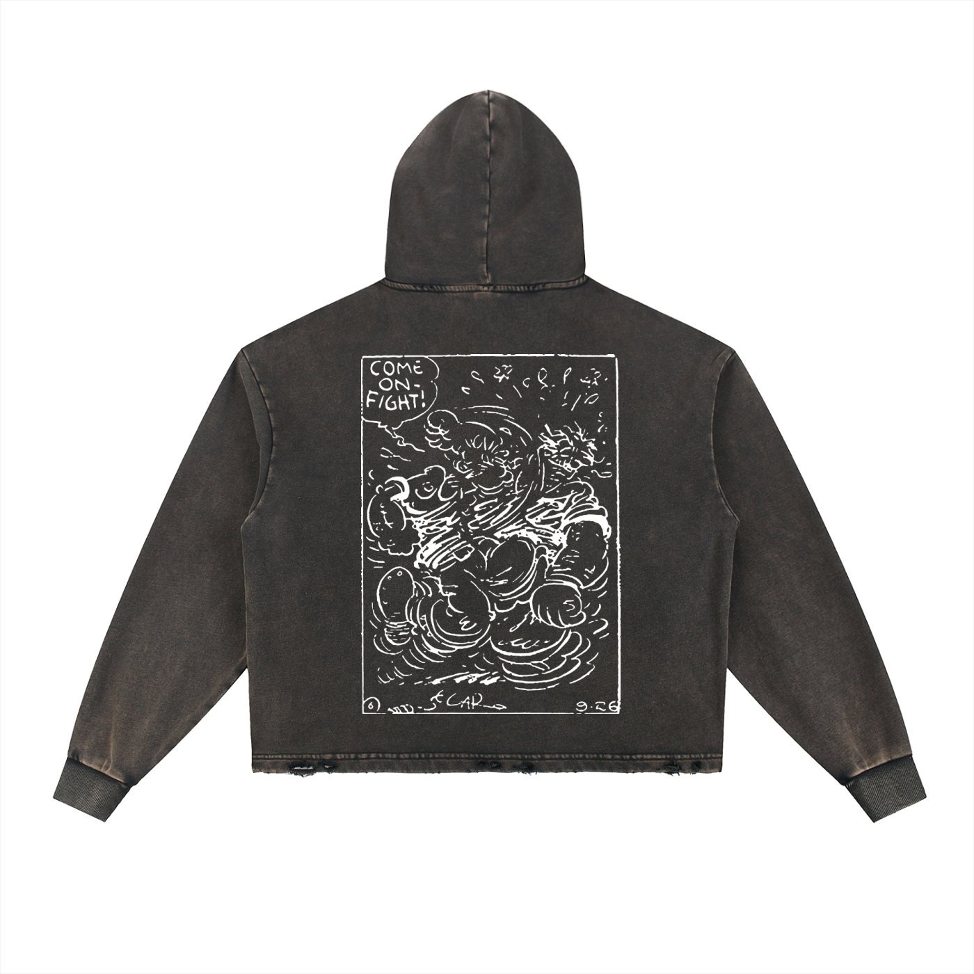 Vintage Washed Frayed-Hem Hoodie – Unisex Oversized Streetwear Classic